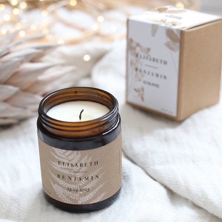 Haced brillar vuestra unión con este detalle para vuestros invitados que podrán guardar como recuerdo esta vela personalizada. Con su delicado perfume con un toque frutal, este regalo para vuestros invitados les permitirá recordar vuestro maravilloso día.