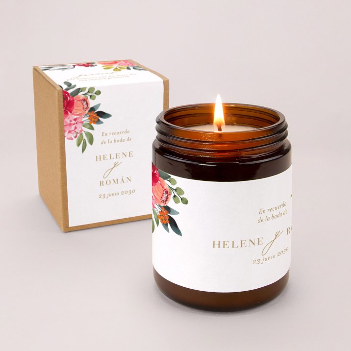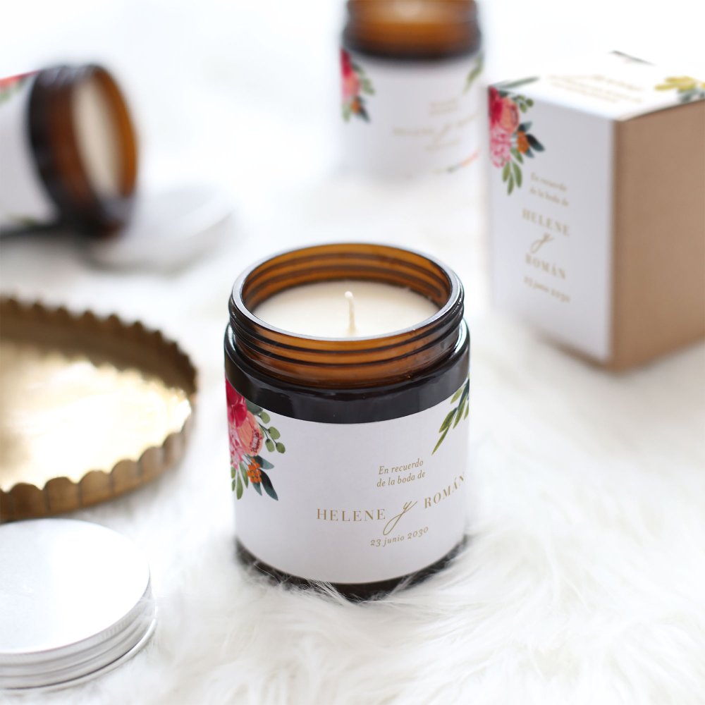 Haced brillar vuestra unión con este detalle para vuestros invitados que podrán guardar como recuerdo esta vela personalizada. Con su delicado perfume con un toque frutal, este regalo para vuestros invitados les permitirá recordar vuestro maravilloso día.
