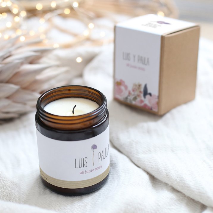 Haced brillar vuestra unión con este detalle para vuestros invitados que podrán guardar como recuerdo esta vela personalizada. Con su delicado perfume con un toque frutal, este regalo para vuestros invitados les permitirá recordar vuestro maravilloso día.