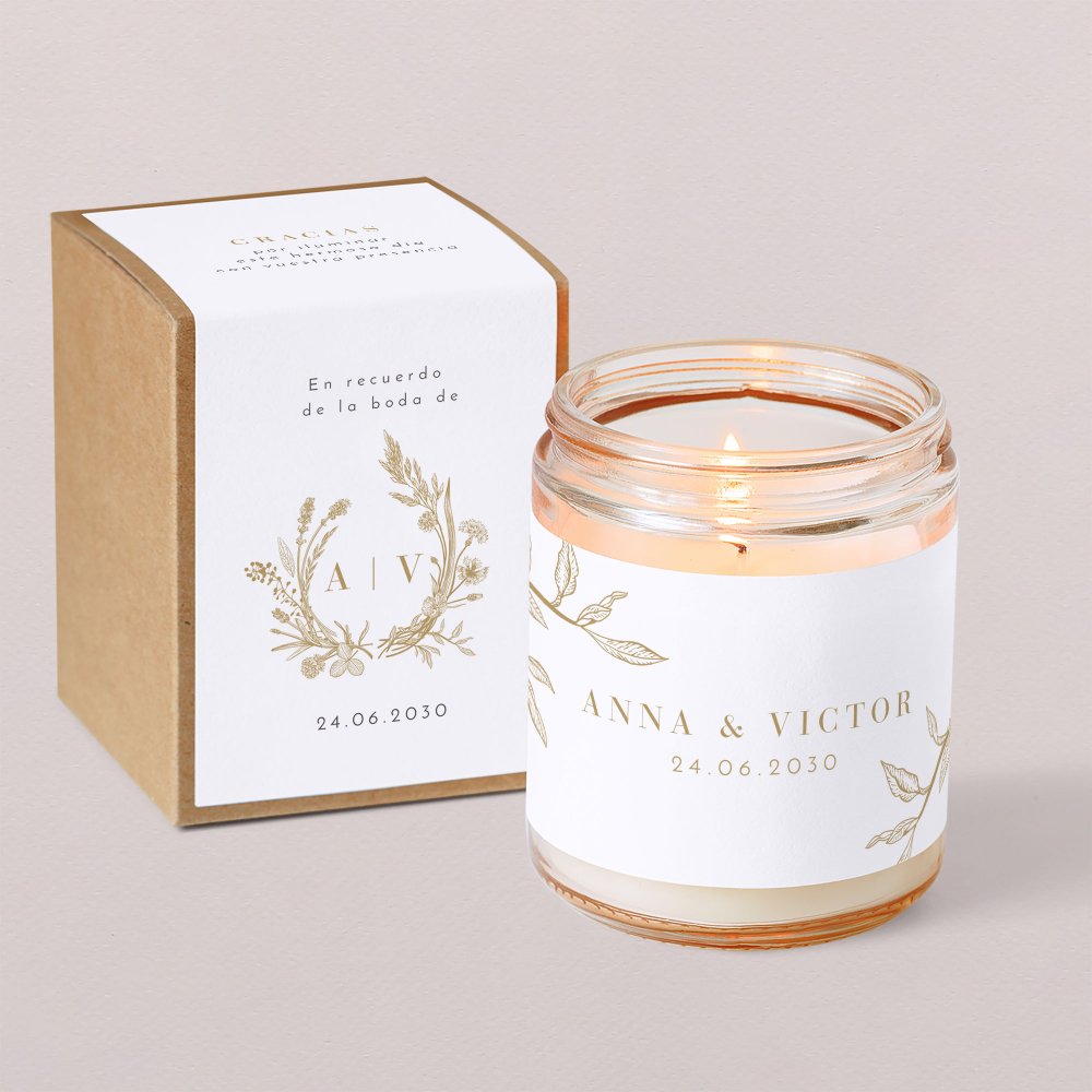 Haced brillar vuestra unión con este detalle para vuestros invitados que podrán guardar como recuerdo esta vela personalizada. Con su delicado perfume con un toque frutal, este regalo para vuestros invitados les permitirá recordar vuestro maravilloso día.