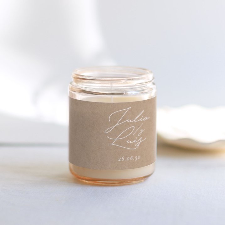 Haced brillar vuestra unión con este detalle para vuestros invitados que podrán guardar como recuerdo esta vela personalizada. Con su delicado perfume con un toque frutal, este regalo para vuestros invitados les permitirá recordar vuestro maravilloso día.