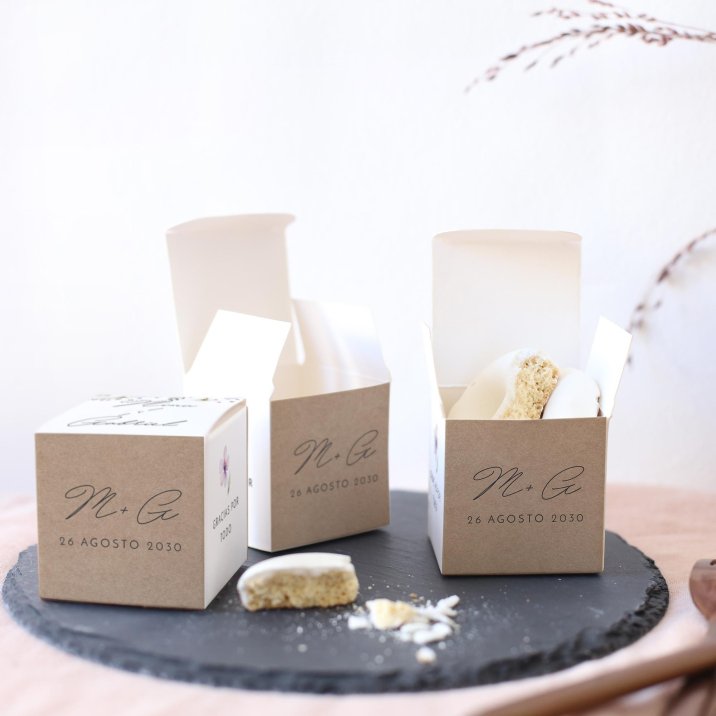 Como sugerencia podéis rellenarlas con nuestras peladillas elaboradas artesanalmente en el sur de Francia (propuestas como accesorio por separado). Os aconsejamos llenarlas con 20 peladillas por caja (50 g). Atención, las cajas vienen listas para montar.