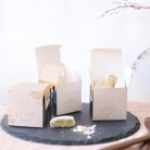 Esta cajita (de 5,4 x 5,4 cm) se puede rellenar con dulces, peladillas u otras sorpresas. Será un original regalo que podréis colocar sobre las mesas y regalar a vuestros invitados como recuerdo de vuestro maravilloso día.