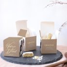 Como sugerencia podéis rellenarlas con nuestras peladillas elaboradas artesanalmente en el sur de Francia (propuestas como accesorio por separado). Os aconsejamos llenarlas con 20 peladillas por caja (50 g). Atención, las cajas vienen listas para montar.