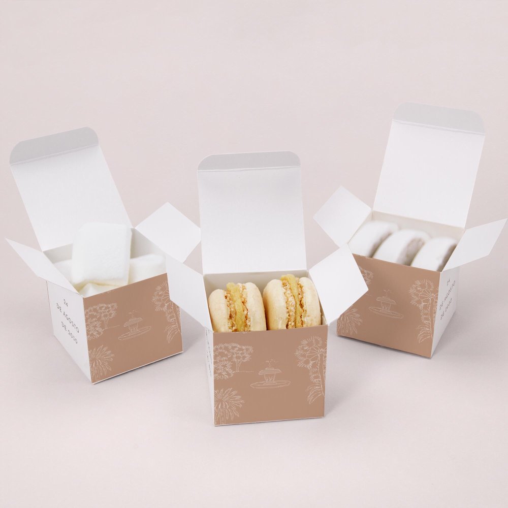 Como sugerencia podéis rellenarlas con nuestras peladillas elaboradas artesanalmente en el sur de Francia (propuestas como accesorio por separado). Os aconsejamos llenarlas con 20 peladillas por caja (50 g). Atención, las cajas vienen listas para montar.