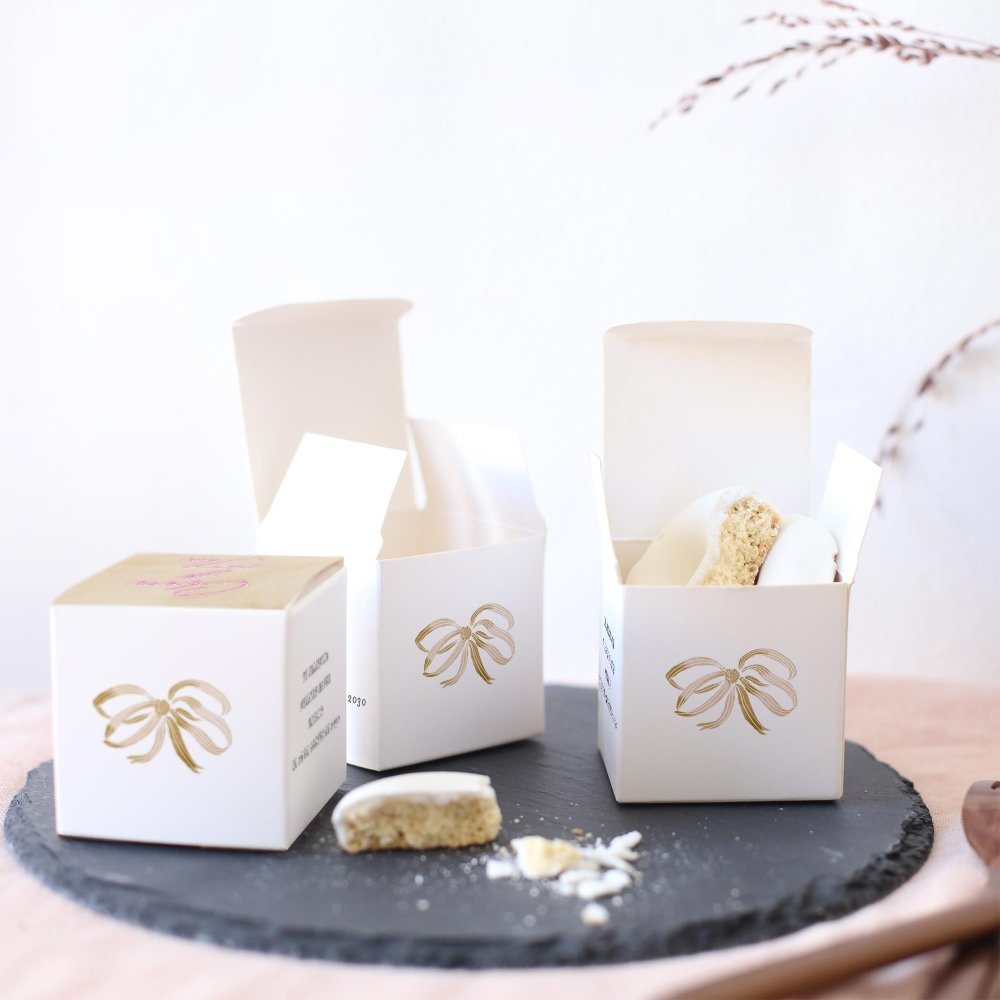 Como sugerencia podéis rellenarlas con nuestras peladillas elaboradas artesanalmente en el sur de Francia (propuestas como accesorio por separado). Os aconsejamos llenarlas con 20 peladillas por caja (50 g). Atención, las cajas vienen listas para montar.