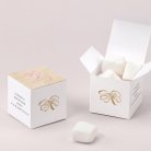 Esta cajita (de 5,4 x 5,4 cm) se puede rellenar con dulces, peladillas u otras sorpresas. Será un original regalo que podréis colocar sobre las mesas y regalar a vuestros invitados como recuerdo de vuestro maravilloso día.