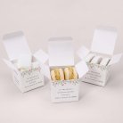 Esta cajita (de 5,4 x 5,4 cm) se puede rellenar con dulces, peladillas u otras sorpresas. Será un original regalo que podréis colocar sobre las mesas y regalar a vuestros invitados como recuerdo de vuestro maravilloso día.