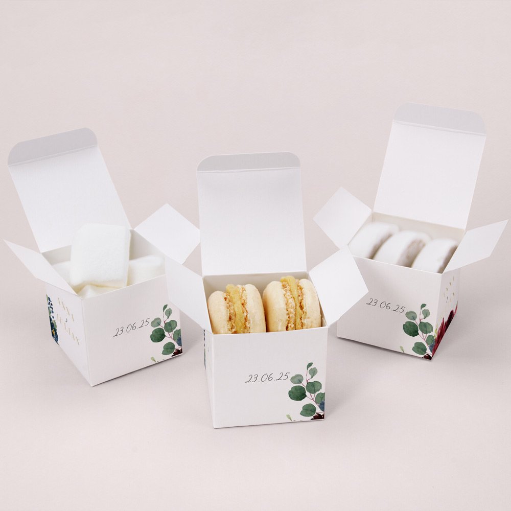 Como sugerencia podéis rellenarlas con nuestras peladillas elaboradas artesanalmente en el sur de Francia (propuestas como accesorio por separado). Os aconsejamos llenarlas con 20 peladillas por caja (50 g). Atención, las cajas vienen listas para montar.