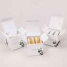 Esta cajita (de 5,4 x 5,4 cm) se puede rellenar con dulces, peladillas u otras sorpresas. Será un original regalo que podréis colocar sobre las mesas y regalar a vuestros invitados como recuerdo de vuestro maravilloso día.