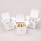 Esta cajita (de 5,4 x 5,4 cm) se puede rellenar con dulces, peladillas u otras sorpresas. Será un original regalo que podréis colocar sobre las mesas y regalar a vuestros invitados como recuerdo de vuestro maravilloso día.