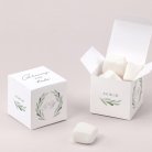 Esta cajita (de 5,4 x 5,4 cm) se puede rellenar con dulces, peladillas u otras sorpresas. Será un original regalo que podréis colocar sobre las mesas y regalar a vuestros invitados como recuerdo de vuestro maravilloso día.