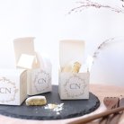 Como sugerencia podéis rellenarlas con nuestras peladillas elaboradas artesanalmente en el sur de Francia (propuestas como accesorio por separado). Os aconsejamos llenarlas con 20 peladillas por caja (50 g). Atención, las cajas vienen listas para montar.