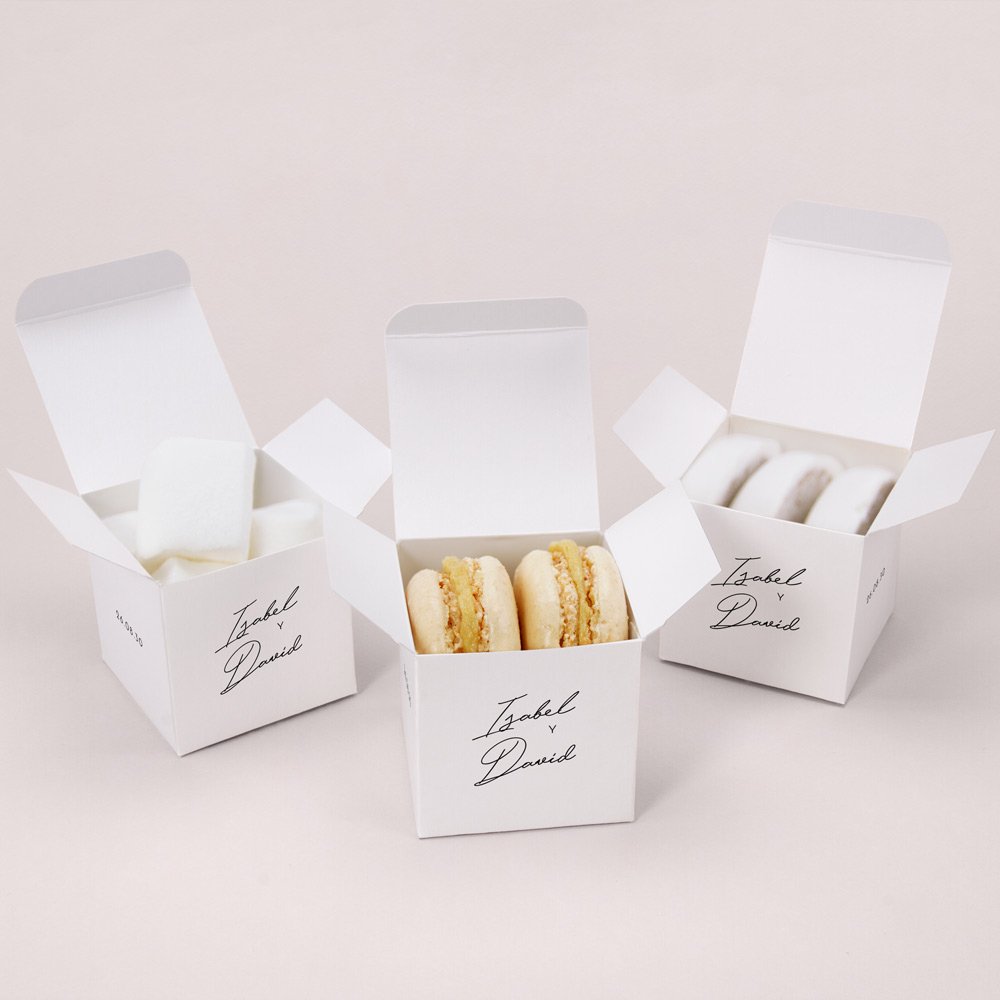 Como sugerencia podéis rellenarlas con nuestras peladillas elaboradas artesanalmente en el sur de Francia (propuestas como accesorio por separado). Os aconsejamos llenarlas con 20 peladillas por caja (50 g). Atención, las cajas vienen listas para montar.