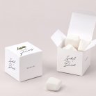 Esta cajita (de 5,4 x 5,4 cm) se puede rellenar con dulces, peladillas u otras sorpresas. Será un original regalo que podréis colocar sobre las mesas y regalar a vuestros invitados como recuerdo de vuestro maravilloso día.