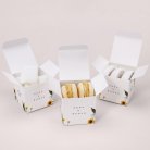 Esta cajita (de 5,4 x 5,4 cm) se puede rellenar con dulces, peladillas u otras sorpresas. Será un original regalo que podréis colocar sobre las mesas y regalar a vuestros invitados como recuerdo de vuestro maravilloso día.
