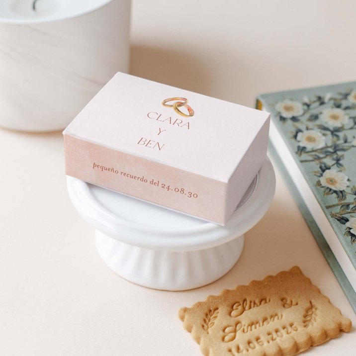 Un regalo personalizado es un acierto asegurado, con la fecha del día de tu boda y vuestros nombres impresos en la cajita.