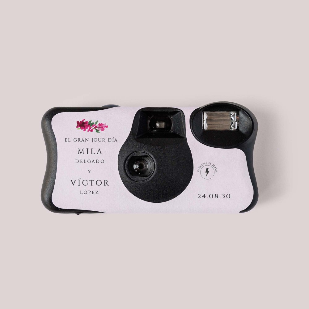 Viste tu cámara desechable de boda con una etiqueta adhesiva personalizable, perfectamente adaptada al tema de tu gran día.