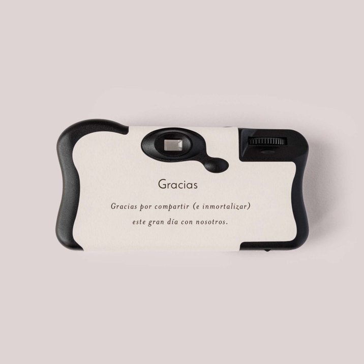 Colocada en cada mesa, esta cámara personalizada permitirá a tus invitados capturar la entrada de los novios, las mesas llenas de vida, las risas y todas las emociones de este día especial.