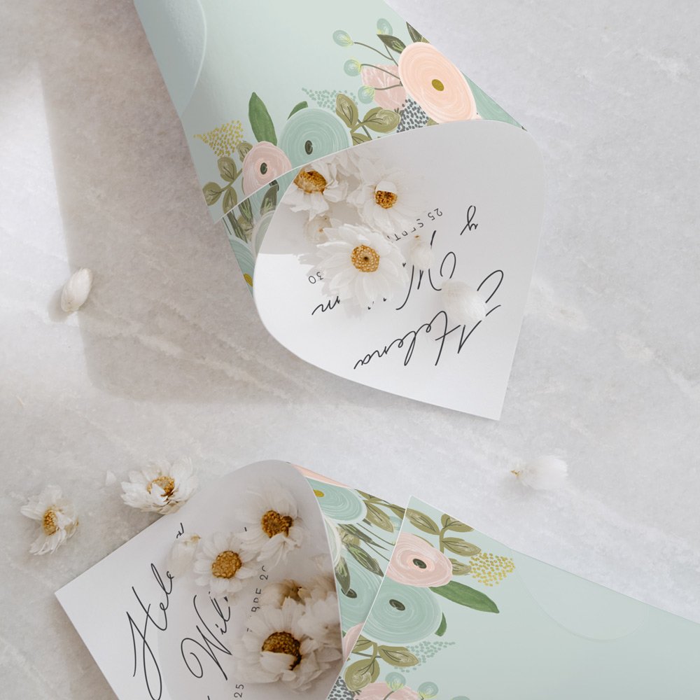 Recibiréis las hojas, que deberéis montar en forma de cono con la ayuda de una etiqueta autoadhesiva a juego, incluida en el precio.