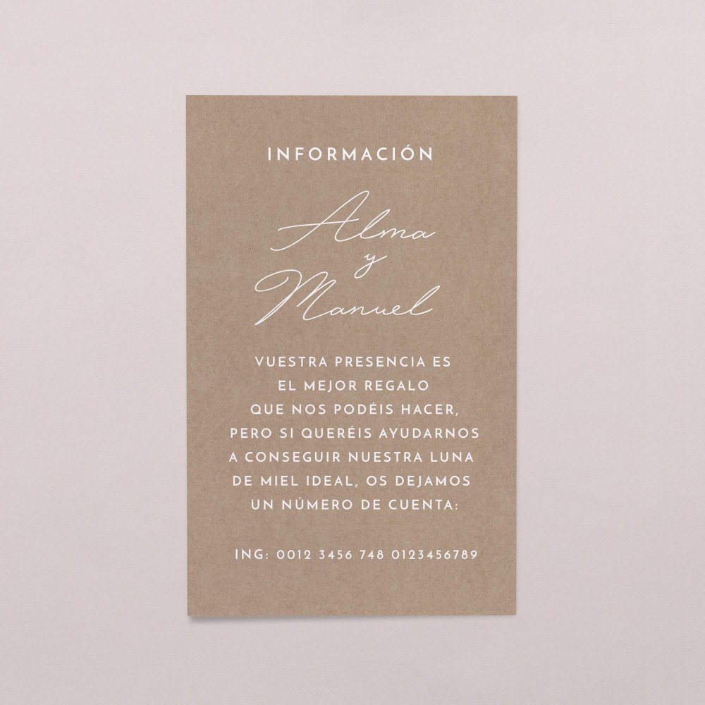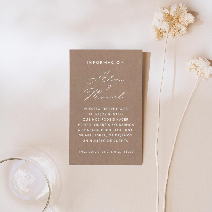 Para dar informaciones concretas como el número de cuenta, cómo llegar, etc. o reservarla para aquellos invitados más íntimos a los que queréis dirigir un mensaje especial.