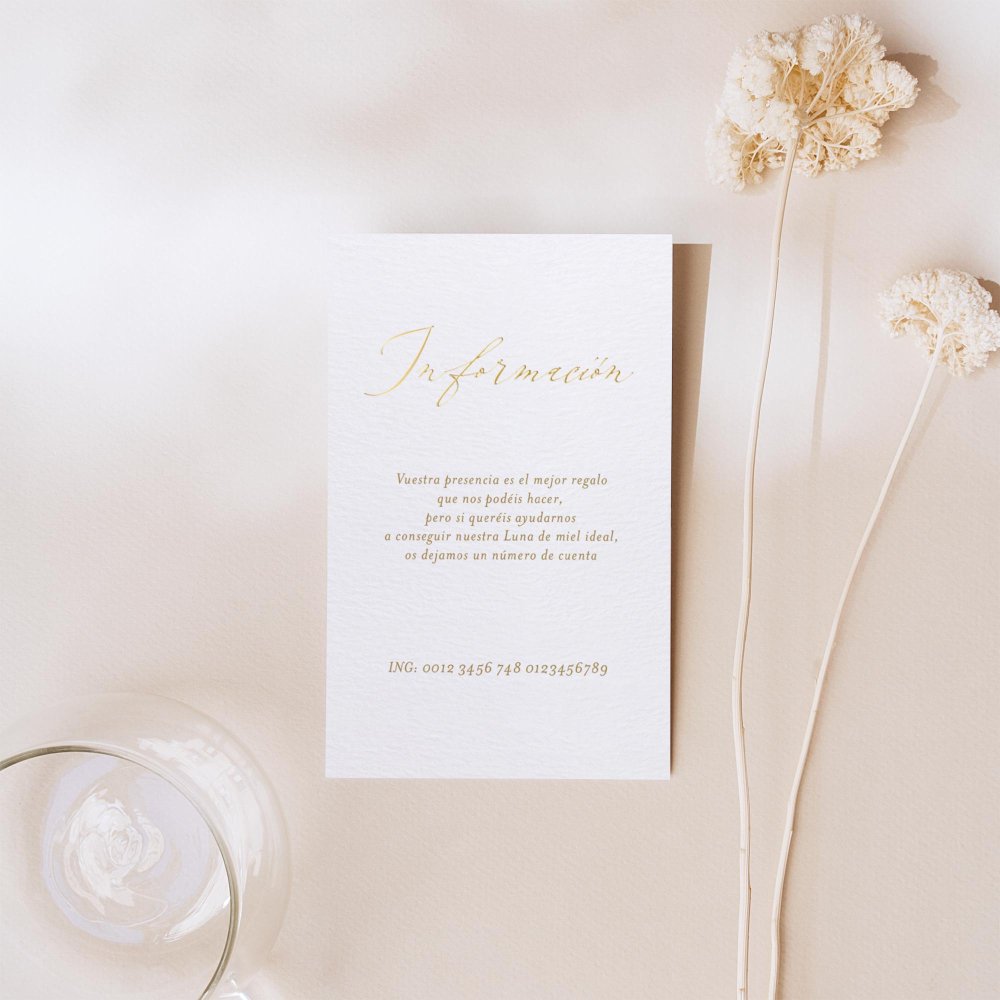 Para dar informaciones concretas como el número de cuenta, cómo llegar, etc. o reservarla para aquellos invitados más íntimos a los que queréis dirigir un mensaje especial.