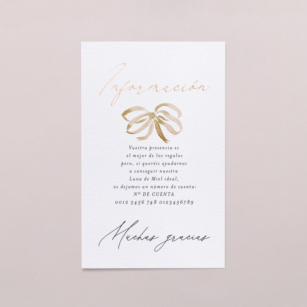 Tarjeta número de cuenta boda