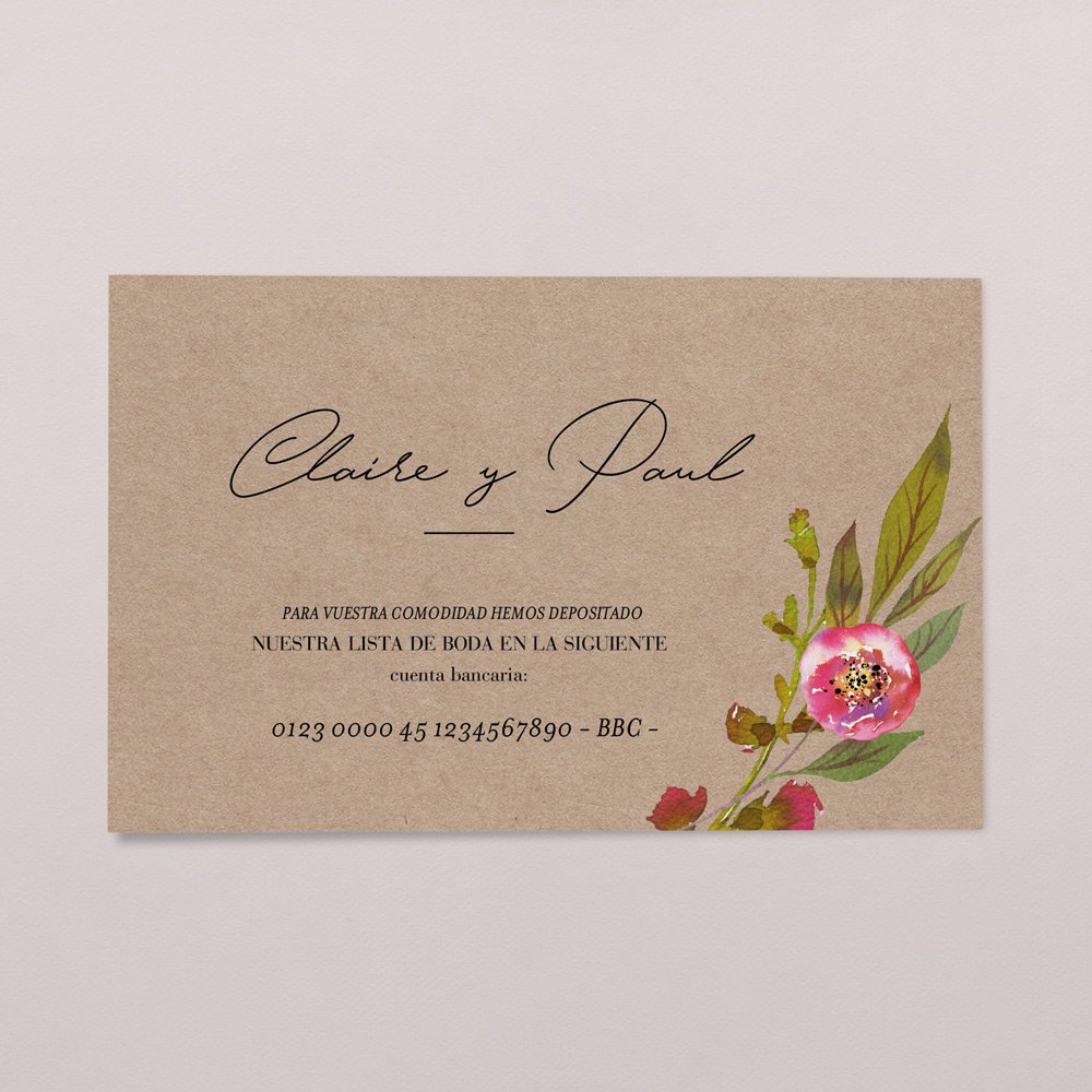 Tarjeta número de cuenta boda