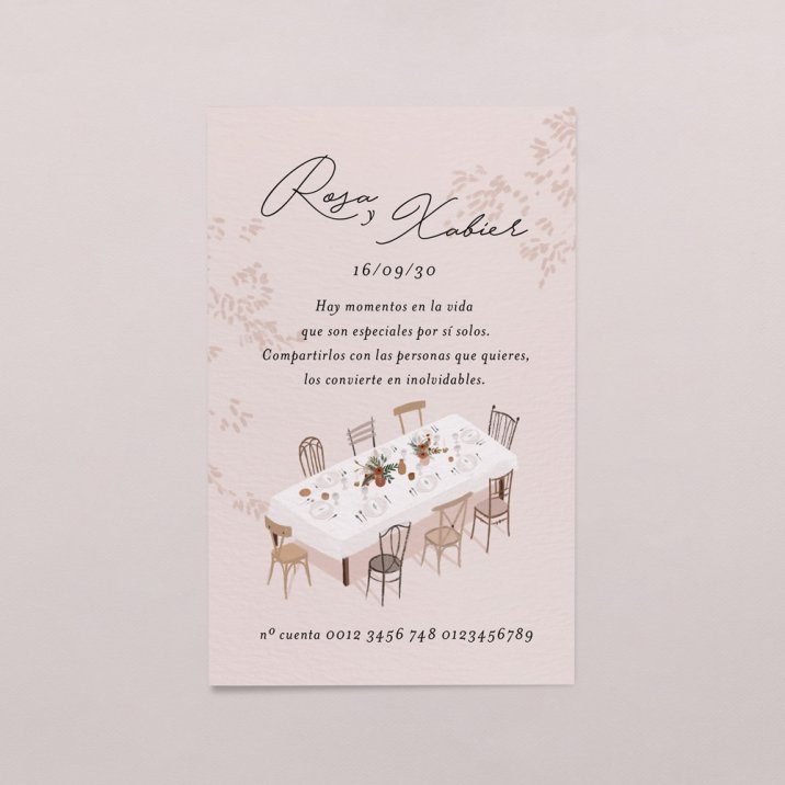 Para dar informaciones concretas como el número de cuenta, cómo llegar, etc. o reservarla para aquellos invitados más íntimos a los que queréis dirigir un mensaje especial.
