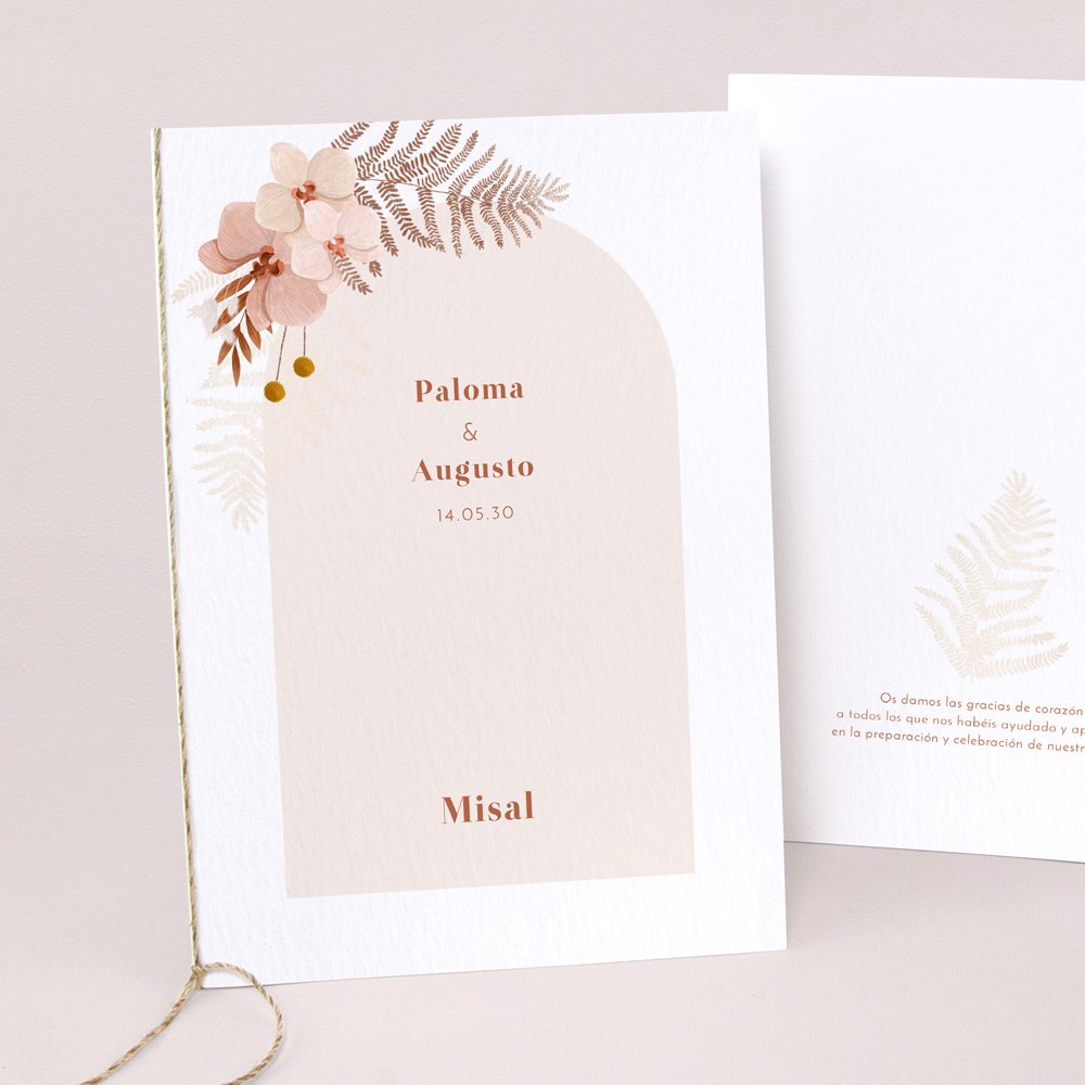 Cubierta de libro de misa en cartulina a juego con tu invitación. Se puede decorar con un lazo (se compra por separado, varios colores disponibles). Las hojas interiores no se suministran (sugerencia: Imprime las hojas interiores en papel A4, dóblalas y átalas con el lazo).