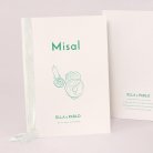 Cubierta de libro de misa en cartulina a juego con tu invitación. Se puede decorar con un lazo (se compra por separado, varios colores disponibles). Las hojas interiores no se suministran (sugerencia: Imprime las hojas interiores en papel A4, dóblalas y átalas con el lazo).