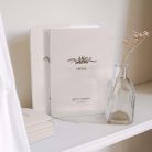 Cubierta de libro de misa en cartulina a juego con tu invitación. Se puede decorar con un lazo (se compra por separado, varios colores disponibles). Las hojas interiores no se suministran (sugerencia: Imprime las hojas interiores en papel A4, dóblalas y átalas con el lazo).