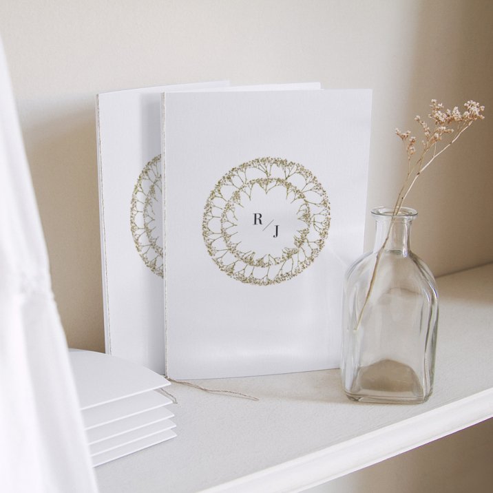 Cubierta de libro de misa en cartulina a juego con tu invitación. Se puede decorar con un lazo (se compra por separado, varios colores disponibles). Las hojas interiores no se suministran (sugerencia: Imprime las hojas interiores en papel A4, dóblalas y átalas con el lazo).