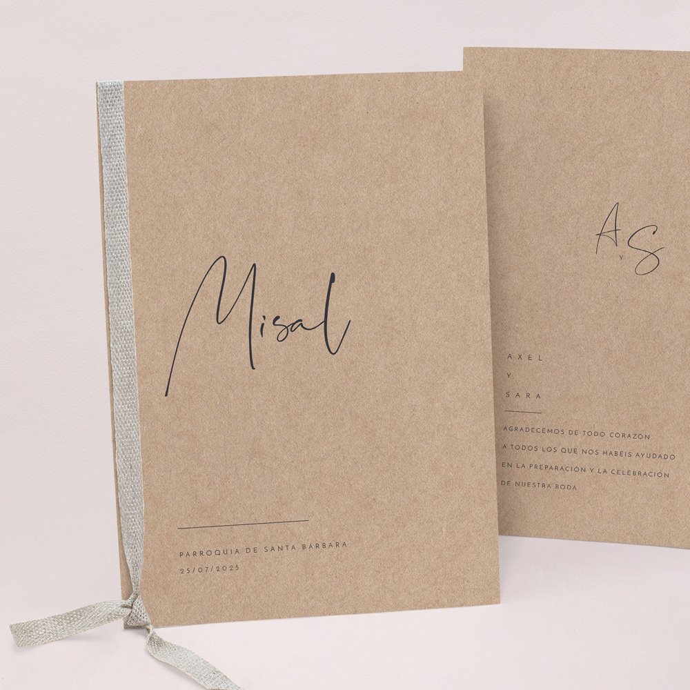 Cubierta de libro de misa en cartulina a juego con tu invitación. Se puede decorar con un lazo (se compra por separado, varios colores disponibles). Las hojas interiores no se suministran (sugerencia: Imprime las hojas interiores en papel A4, dóblalas y átalas con el lazo).