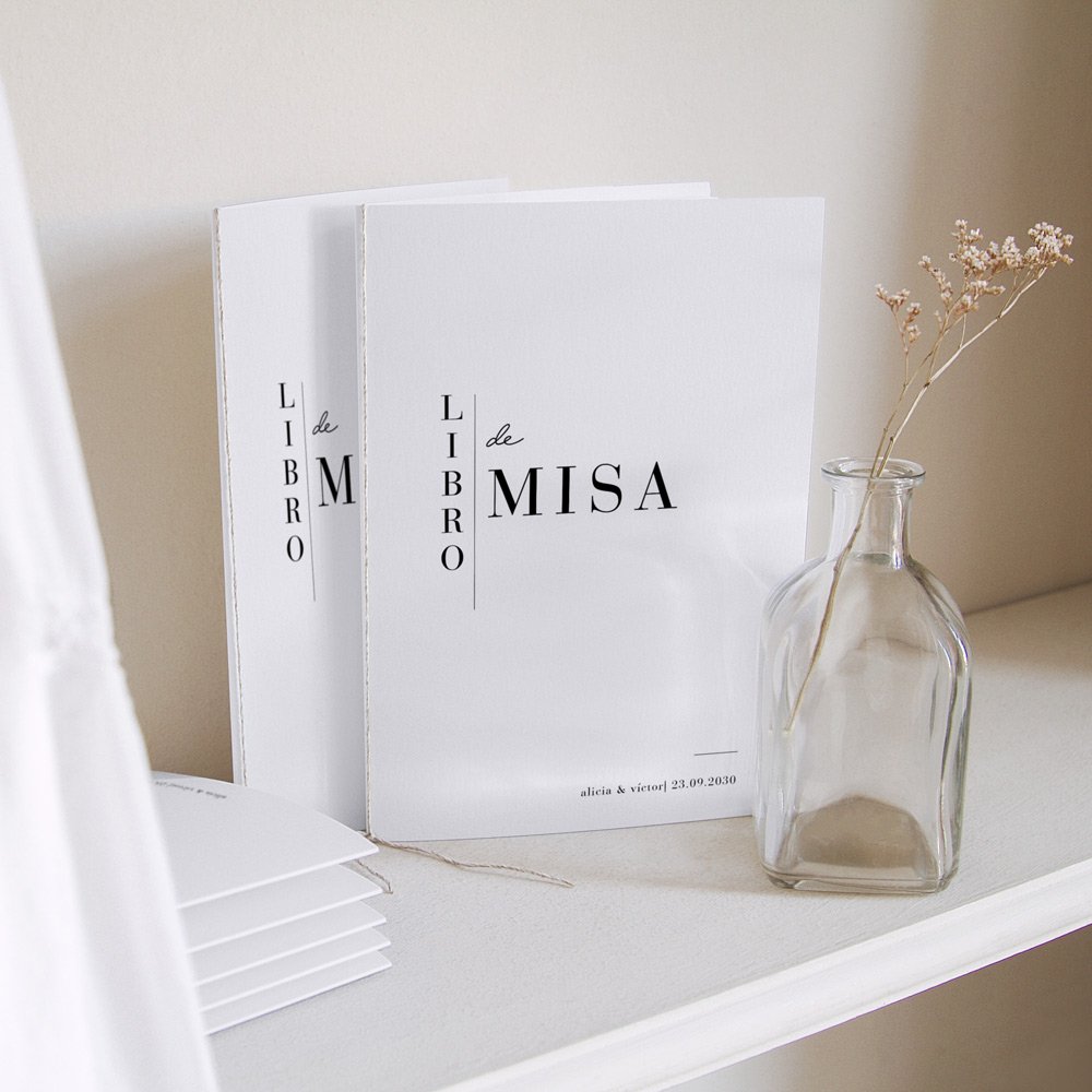 Cubierta de libro de misa en cartulina a juego con tu invitación. Se puede decorar con un lazo (se compra por separado, varios colores disponibles). Las hojas interiores no se suministran (sugerencia: Imprime las hojas interiores en papel A4, dóblalas y átalas con el lazo).