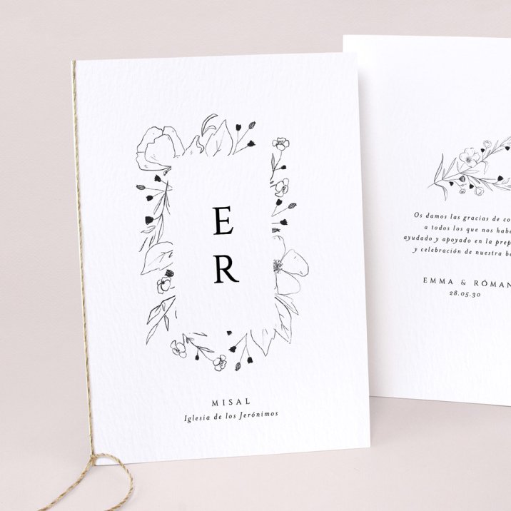 Cubierta de libro de misa en cartulina a juego con tu invitación. Se puede decorar con un lazo (se compra por separado, varios colores disponibles). Las hojas interiores no se suministran (sugerencia: Imprime las hojas interiores en papel A4, dóblalas y átalas con el lazo).