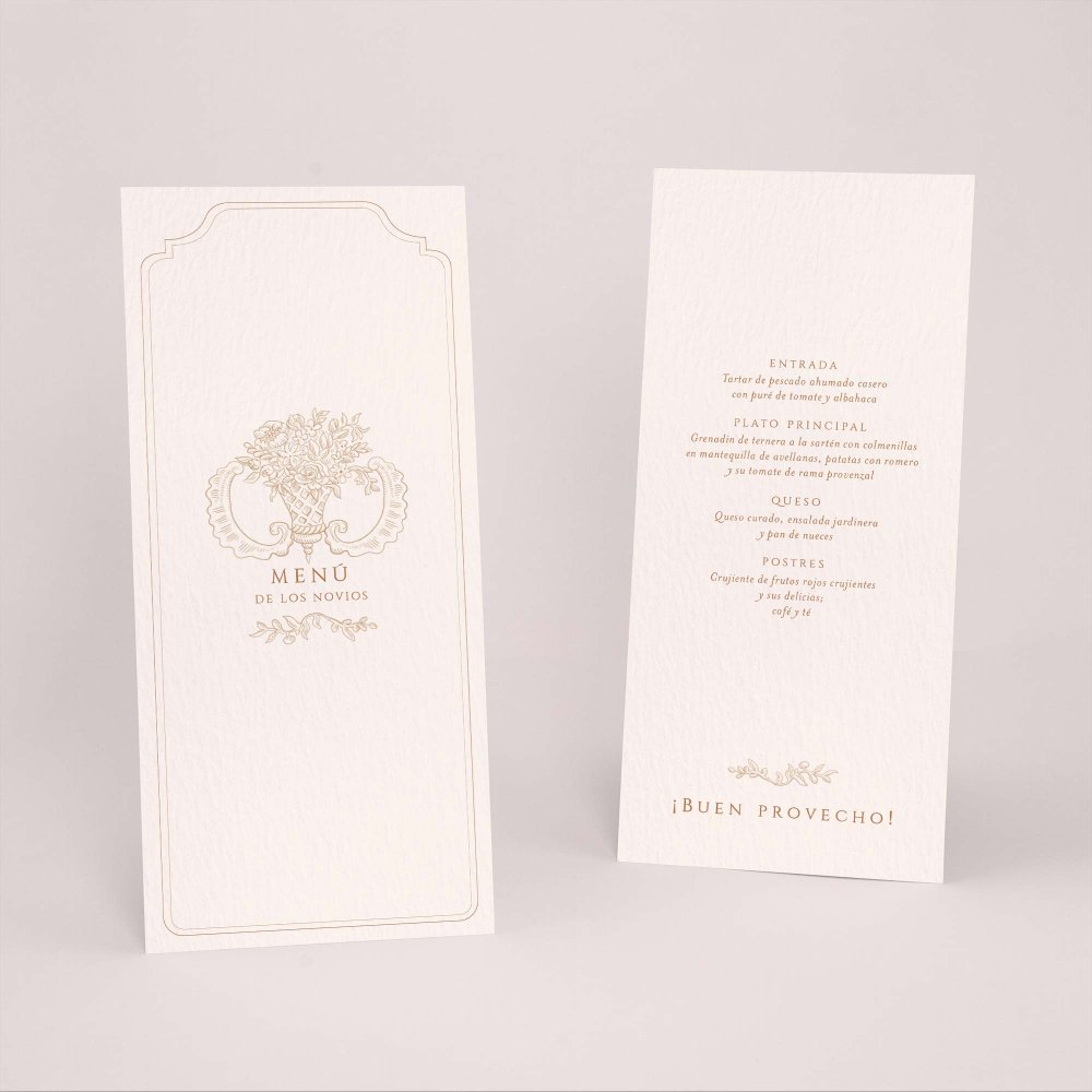 ¿Ya tienes el menú de tu boda? Imprímelo a conjunto con tu invitación.