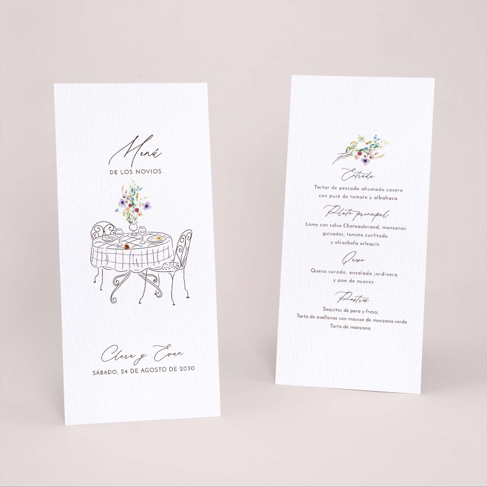 ¿Ya tienes el menú de tu boda? Imprímelo a conjunto con tu invitación.