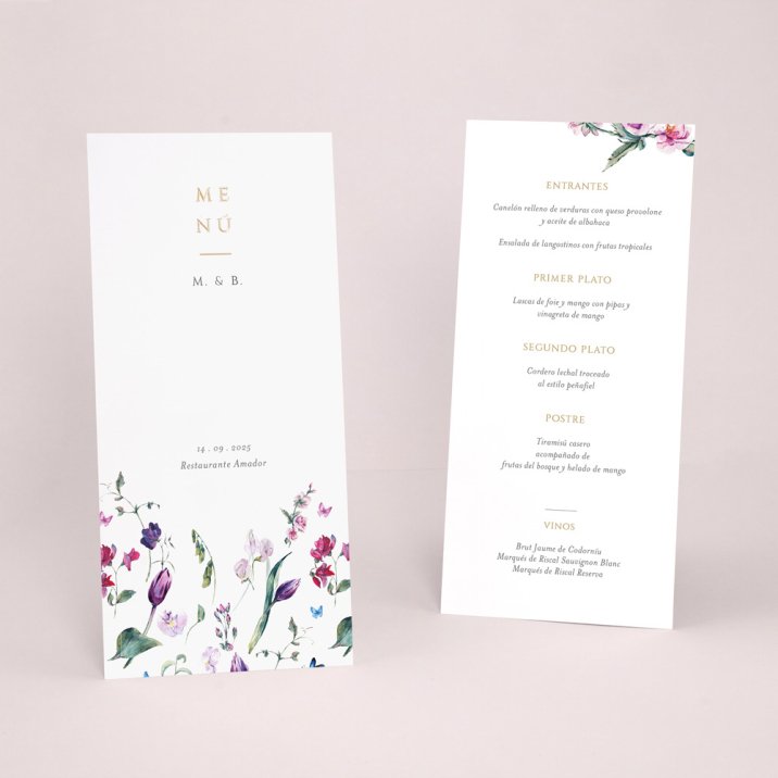 ¿Ya tienes el menú de tu boda? Imprímelo a conjunto con tu invitación.
