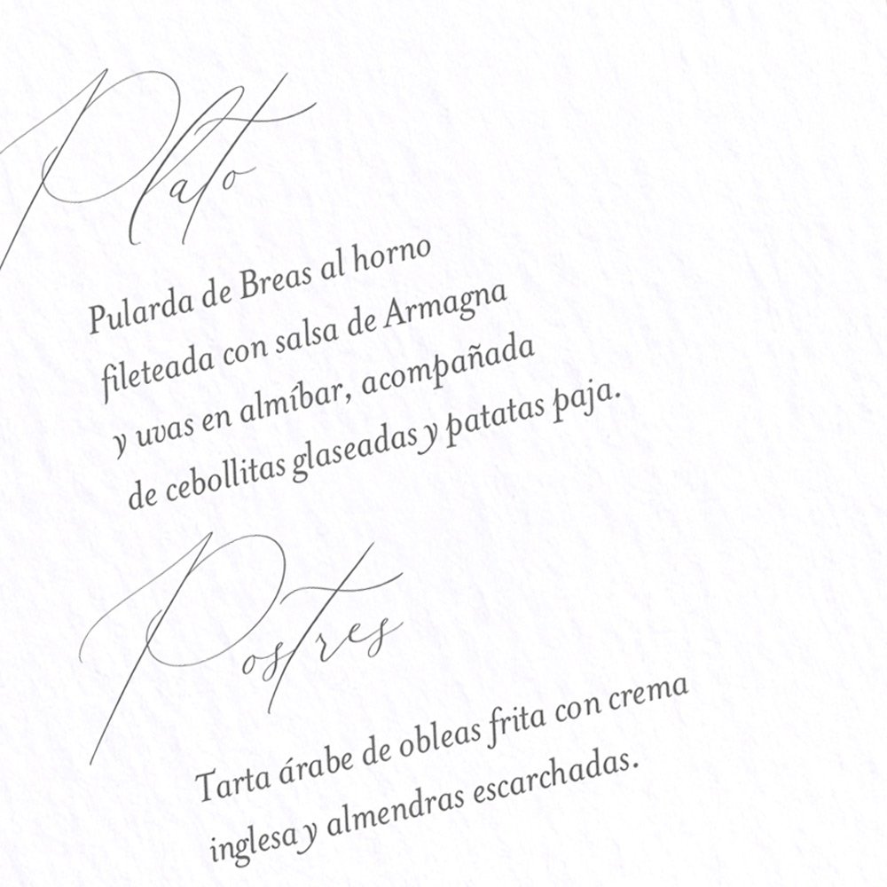 ¿Ya tienes el menú de tu boda? Imprímelo a conjunto con tu invitación.