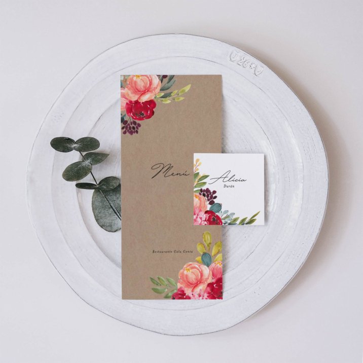 ¿Ya tienes el menú de tu boda? Imprímelo a conjunto con tu invitación.