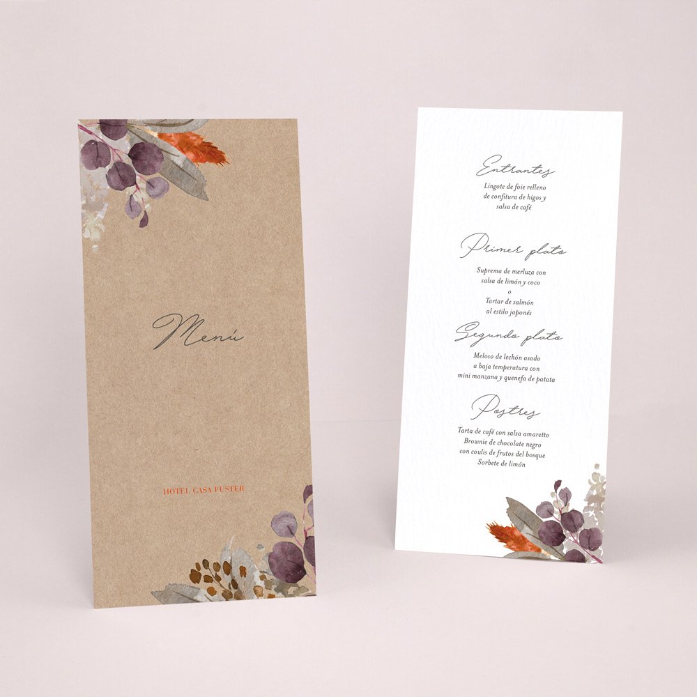 ¿Ya tienes el menú de tu boda? Imprímelo a conjunto con tu invitación.