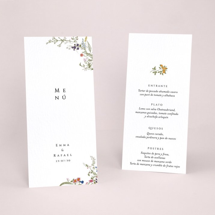 ¿Ya tienes el menú de tu boda? Imprímelo a conjunto con tu invitación.