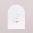 Con su elegante corte en forma de arco y a juego con su invitación, haz de este menú la decoración perfecta de las mesas. Complétala utilizando nuestros soportes de madera o decorando los menús con nuestros cordones y lazos (disponibles como accesorios).