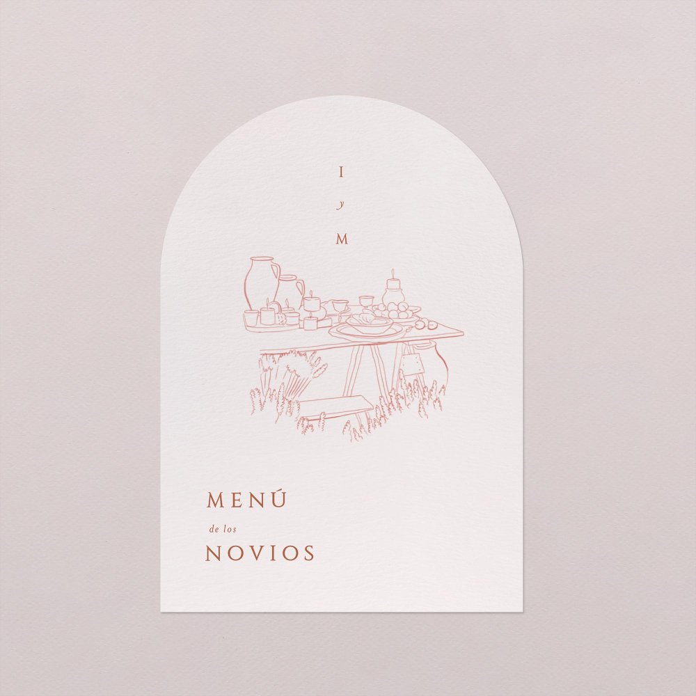 Con su elegante corte en forma de arco y a juego con su invitación, haz de este menú la decoración perfecta de las mesas. Complétala utilizando nuestros soportes de madera o decorando los menús con nuestros cordones y lazos (disponibles como accesorios).