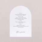 Con su elegante corte en forma de arco y a juego con su invitación, haz de este menú la decoración perfecta de las mesas. Complétala utilizando nuestros soportes de madera o decorando los menús con nuestros cordones y lazos (disponibles como accesorios).