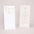 Con su elegante corte en forma de arco y a juego con su invitación, haz de este menú la decoración perfecta de las mesas. Complétala utilizando nuestros soportes de madera o decorando los menús con nuestros cordones y lazos (disponibles como accesorios).