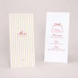 Con su elegante corte en forma de arco y a juego con su invitación, haz de este menú la decoración perfecta de las mesas. Complétala utilizando nuestros soportes de madera o decorando los menús con nuestros cordones y lazos (disponibles como accesorios).