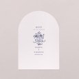 Con su elegante corte en forma de arco y a juego con su invitación, haz de este menú la decoración perfecta de las mesas. Complétala utilizando nuestros soportes de madera o decorando los menús con nuestros cordones y lazos (disponibles como accesorios).