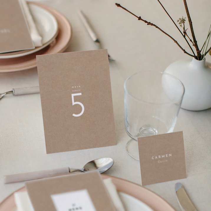 Ponlo en el centro de las mesas, ¡que se vea bien! Tus invitados encontrarán enseguida su sitio después de localizar su mesa en el seating plan.